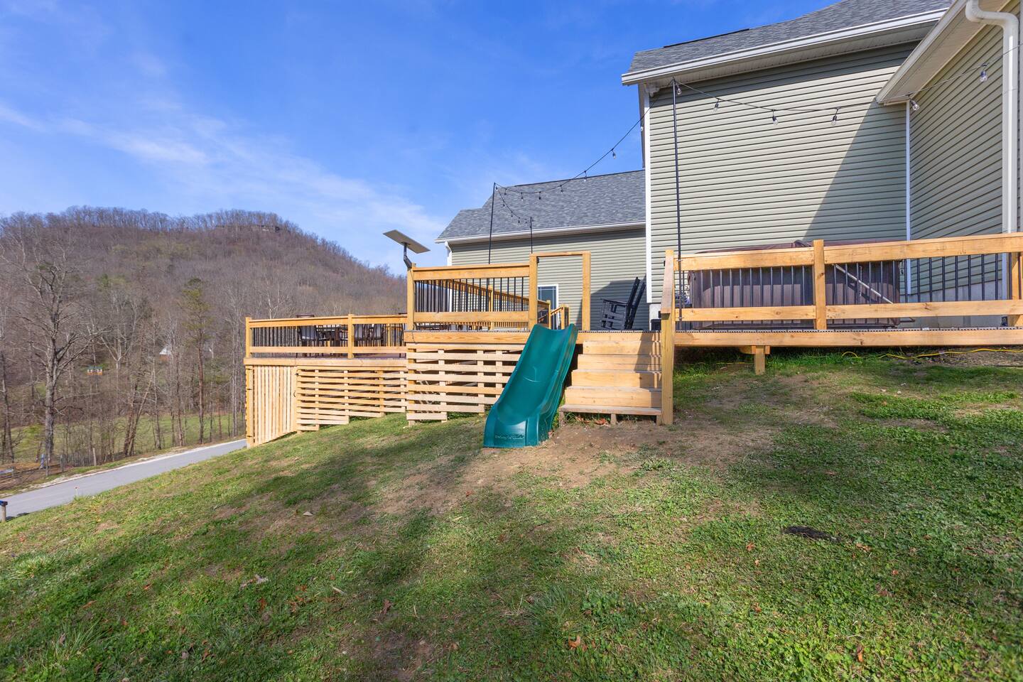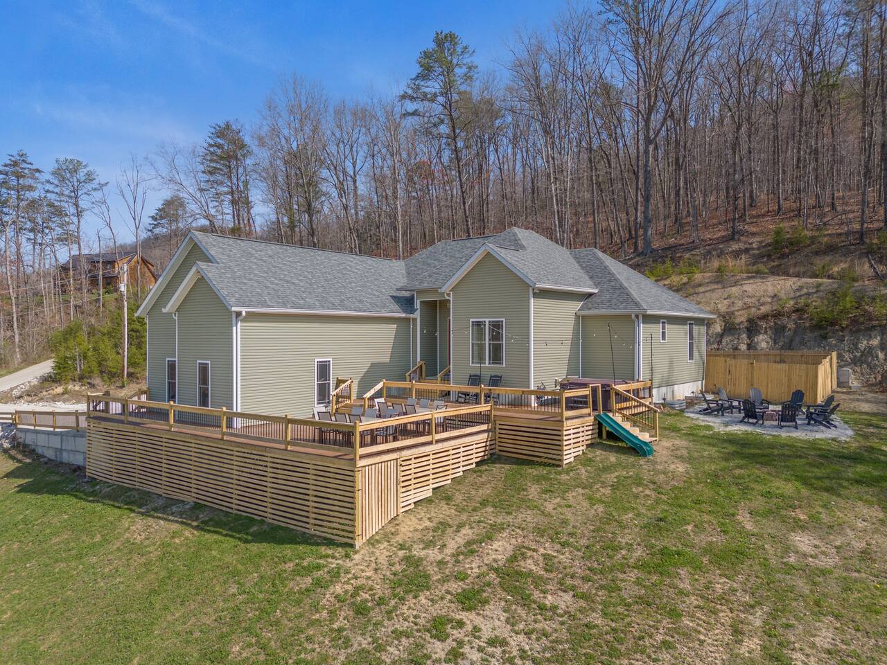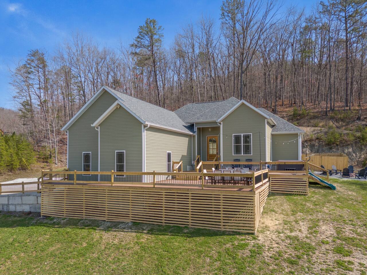 Welcome to the Red River Arch House – the premier family and group destination in KY! Our large home can host 16+ and is equipped with a professional chef kitchen, 8 minutes to Kroger, 12 to Nada tunnel and 20 to Natural Bridge. Plenty of interactive entertainment for rainy days including a theater, climbing wall/monkey bars, air hockey, foosball, pingpong, garage basketball. For evenings, enjoy beautiful mountain views on the deck, from the hot tub or by the fire pit. Pet and Kid friendly!
