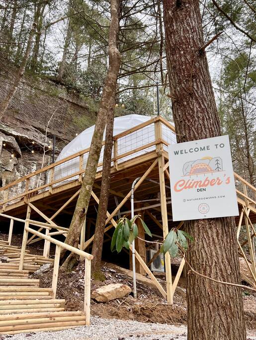 A rare, elevated stay in Red River Gorge, this property offers the perfect setting for an upscale glamping experience. This newly-built dome combines modern design with earthy textures- giving you a "home sweet home" type feeling. Bring your crew over the river and through the woods to our 26-acres of woodlands, with free access to Spirit Lake. Located 15 mins. from Natural Bridge State Park in Daniel Boone Nat. Forest. Come hike, climb, & explore the good ole' outdoors! *4WD VEHICLES REQUIRED*
