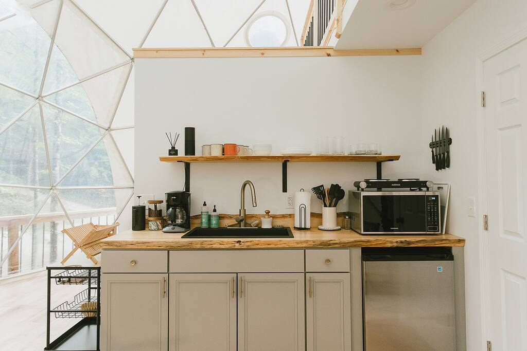 WINTER UPDATE: Since we are located in a more rural area with curvy roads, inclement weather can definitely cause problems with accessing the Dome (as it can with any home). In most circumstances, a 4WD vehicle will be able to tackle the terrain, but snow and ice is problematic. We will keep an eye out on the forecast for your stay and keep you aware of the conditions as we get closer. In the event that inclement weather is on the horizon for your stay we will be sure to notify you. Since it will be hard to access the Dome in snowy/icy conditions, we advise cancelling/rescheduling your trip and we will happily give you a full refund in that event. There are some locals that work to clear the roadways into the development, but it’s not always a timely event, and there is a risk of getting snowed in/stuck in our cabin development- it’s happened to guests of other cabins in the past :) In addition to the dome structure, guests are allowed access to our 26 adjoining acres (the land located just behind the unit). There are 3 unmarked hiking loops/trails around the property, so un-hinged hiking and exploring is encouraged, but please be mindful that there are no markings to navigate your way to and from the dome. Across the property are cliff edges, small caves, and even a small waterfall (located on the left side of our property).
