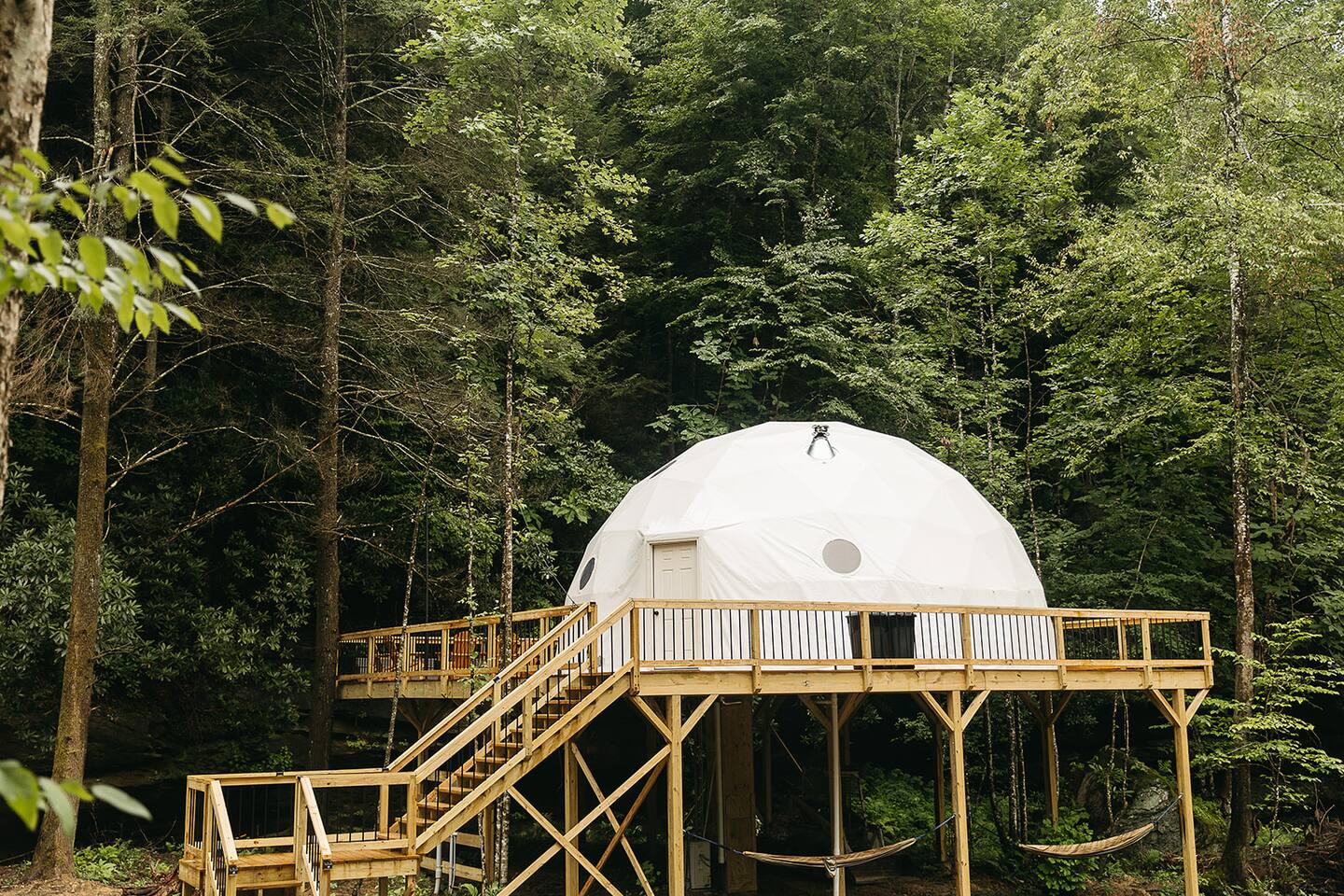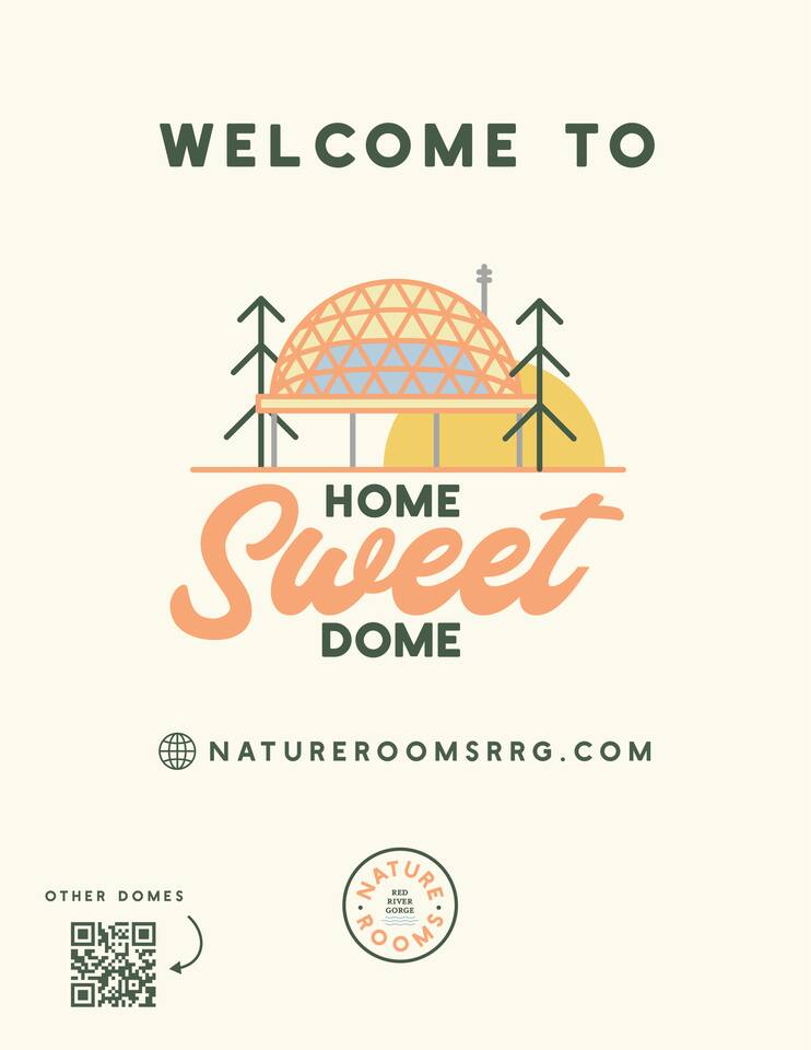 A rare, elevated stay in Red River Gorge, this property offers the perfect setting for an upscale glamping experience. This newly-built dome combines modern design with earthy textures- giving you a "home sweet home" type feeling. Bring your crew over the river and through the woods to our 26-acres of woodlands. Located 15 mins. from Natural Bridge State Park in Daniel Boone Nat. Forest. Come hike, climb, and explore the good ole' outdoors! *4WD VEHICLES ADVISED*