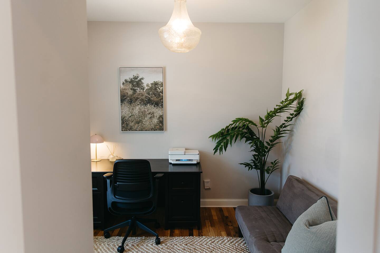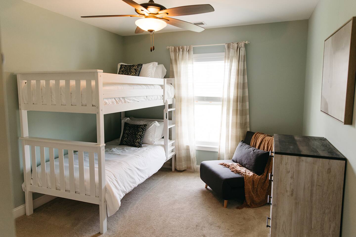 A modern, 2-story home with an open concept downstairs living area for hanging out, a fully-stocked kitchen, and dining area. This home has 4 bedrooms with a bed in each room (2 queen beds, 1 king bed, and a twin bunk bed) and 2.5 bathrooms. It also includes an office/study space as an added bonus (there's a folding couch in the office that can be an added sleeping space)! The house is pleasantly spacious for a group of guests to enjoy! NOTE: Fireplace is a decorative feature and is NOT operational for fire use. It is not included in the list of amenities. :)
