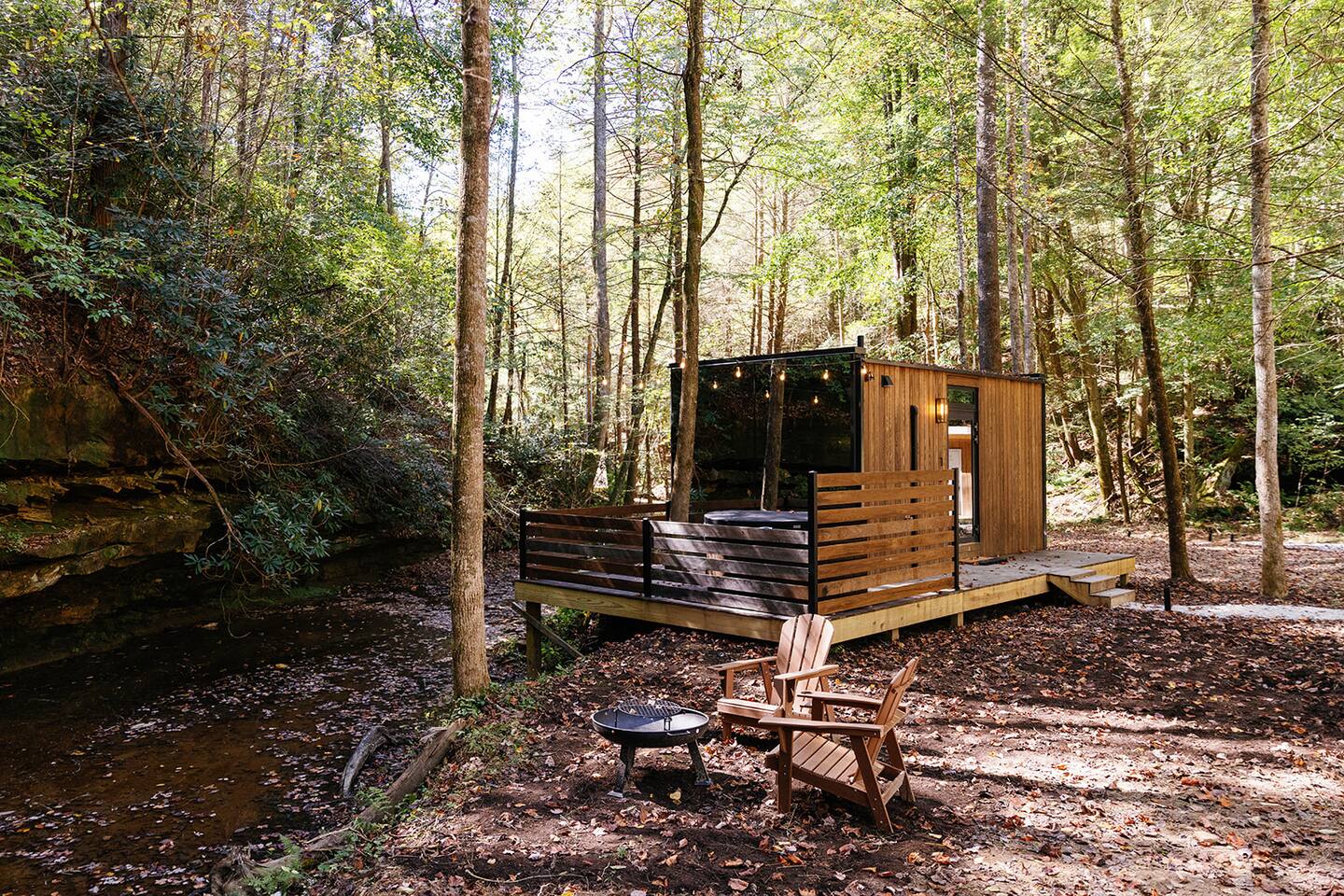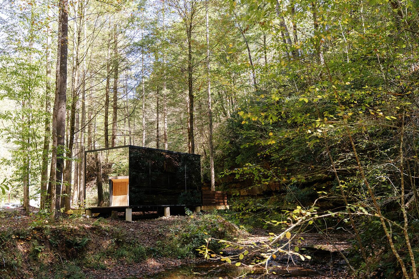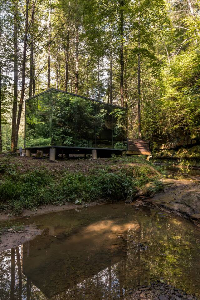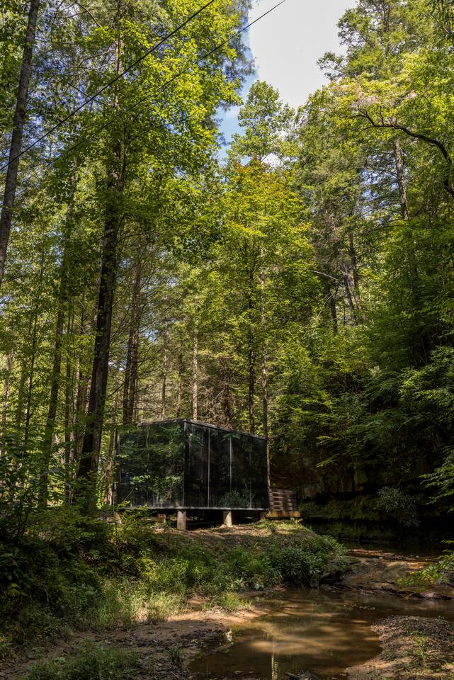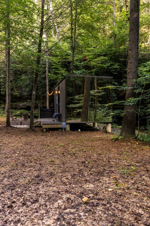 Welcome to Nature Rooms! Enjoy a unique creekside stay in Red River Gorge at our glass house, a perfect choice for a luxurious glamping escape. Combining modern style with natural touches, this newly-built space creates a cozy retreat with an amazing mirrored exterior and full window glass interior view. Set on 26 acres of woodlands, and just 15 minutes from Natural Bridge State Park. Come enjoy a one-of-a-kind getaway! *4WD VEHICLES RECOMMENDED*