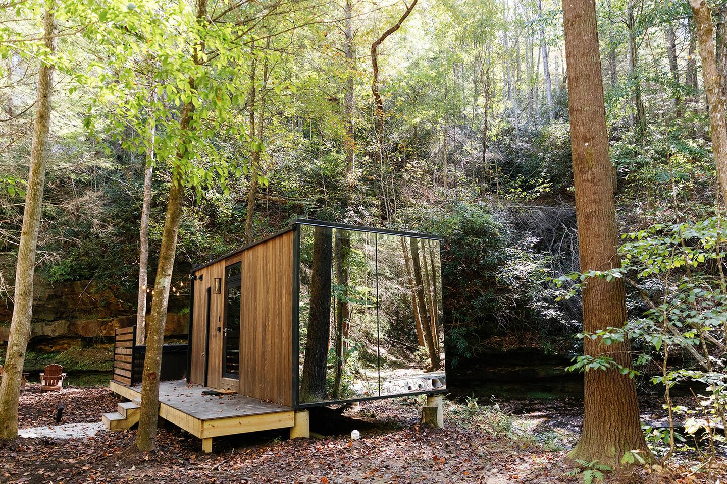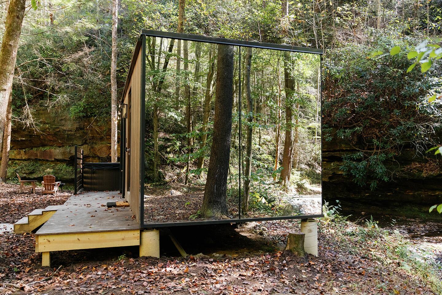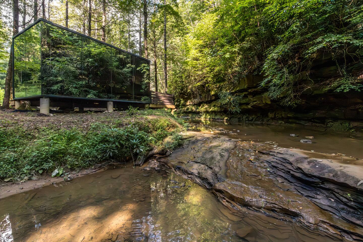 Modern Mirror Home| Creek| Hot-tub | Glass House1