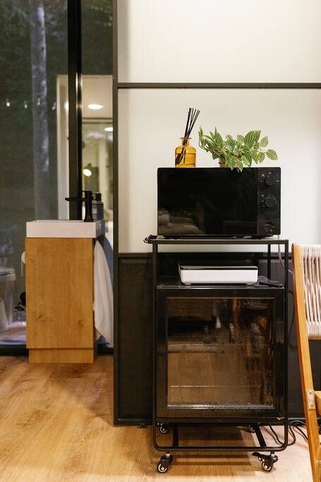 Our space is a one bedroom unit with a queen-sized bed, full kitchenette, and full bath. Equipped with a coffee maker, pour-over kettle, and olive enamel camping ware! Also, we have a smart projector and screen for catching a late night movie (which can cast to Android or iOS mobile devices).