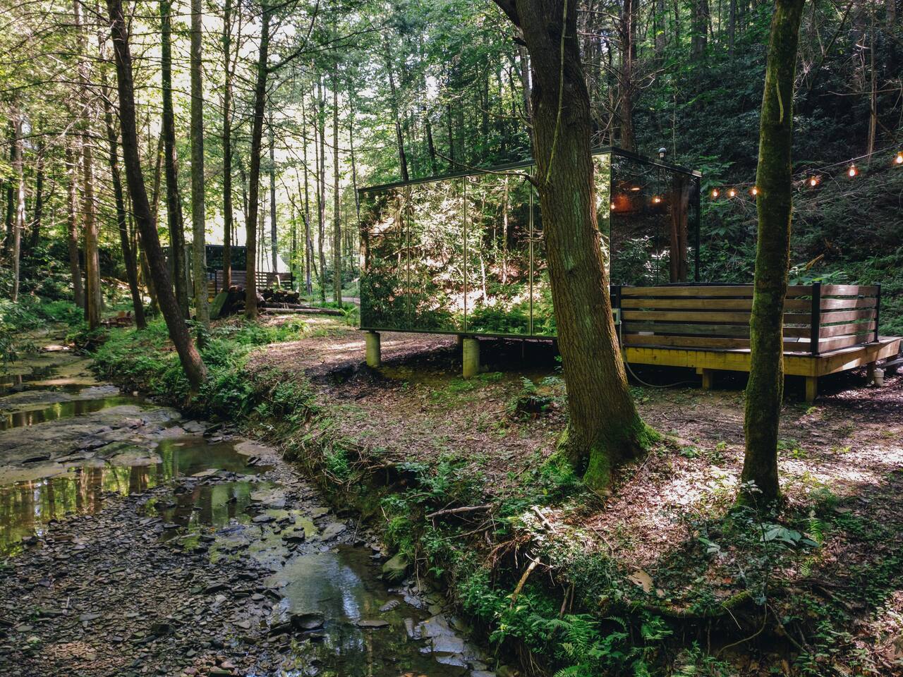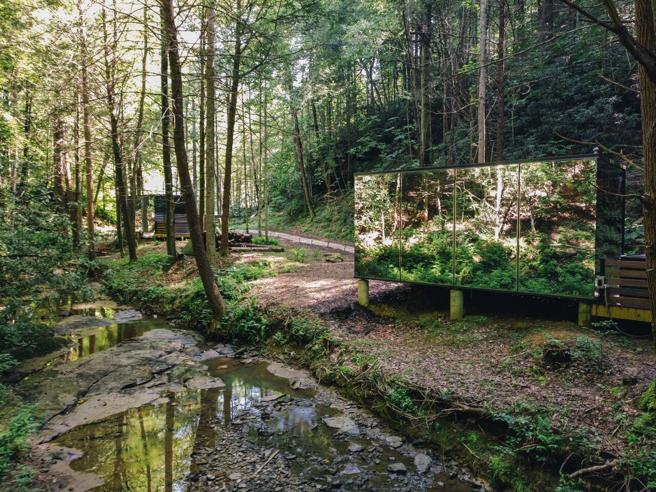Welcome to Nature Rooms! Enjoy a unique creekside stay in Red River Gorge at our glass house, a perfect choice for a luxurious glamping escape. Combining modern style with natural touches, this newly-built space creates a cozy retreat with an amazing mirrored exterior and full window glass interior view. Set on 26 acres of woodlands, and just 15 minutes from Natural Bridge State Park. Come enjoy a one-of-a-kind getaway! *4WD VEHICLES RECOMMENDED*