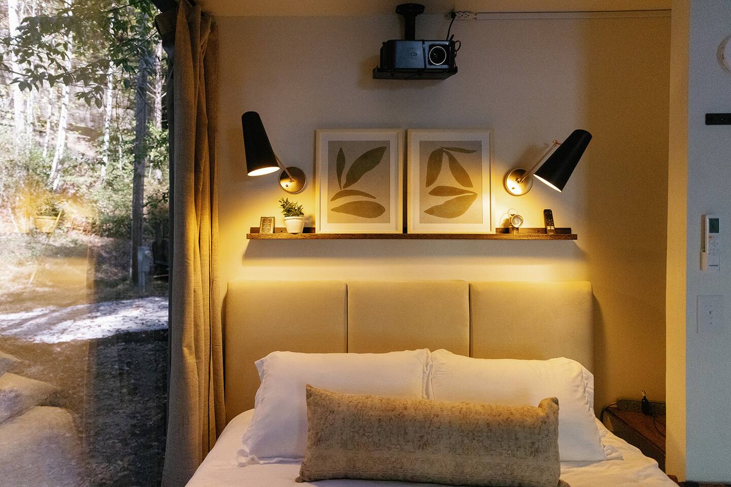 Our space is a one bedroom unit with a queen-sized bed, full kitchenette, and full bath. Equipped with a coffee maker, pour-over kettle, and olive enamel camping ware! Also, we have a smart projector and screen for catching a late night movie (which can cast to Android or iOS mobile devices).