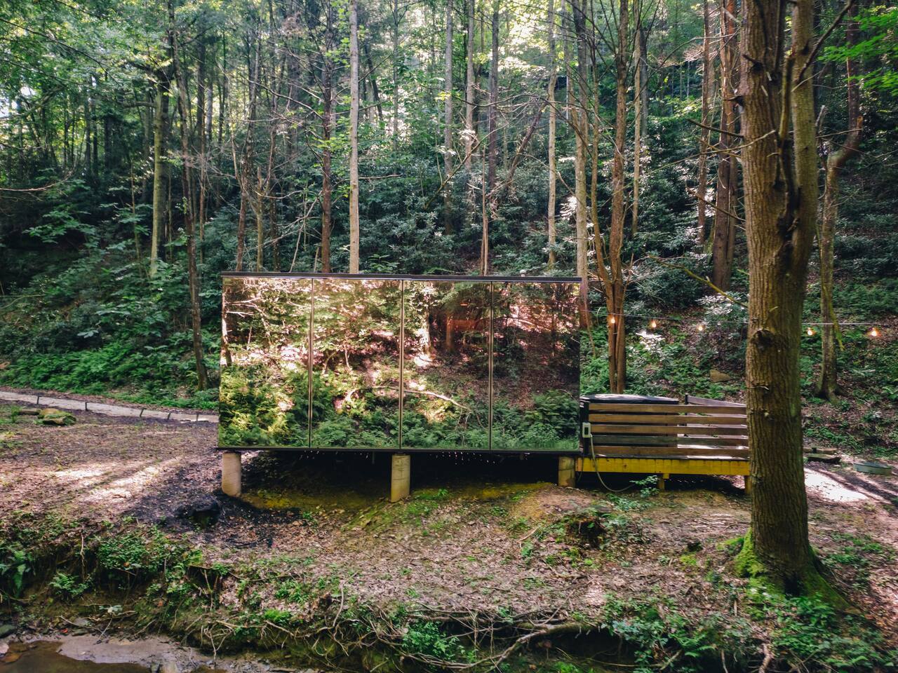 Modern Mirror Home| Creek| Hot-tub | Glass House3